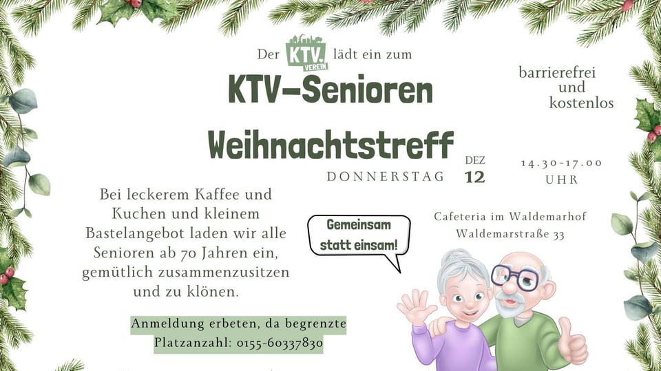 wir laden Sie herzlich zu unserer festlichen Weihnachtsfeier ein! Freuen Sie sich auf einen gemütlichen Nachmittag mit köstlichem Kaffee, leckerem Kuchen und viel Zeit zum Klönen und Beisammensein.